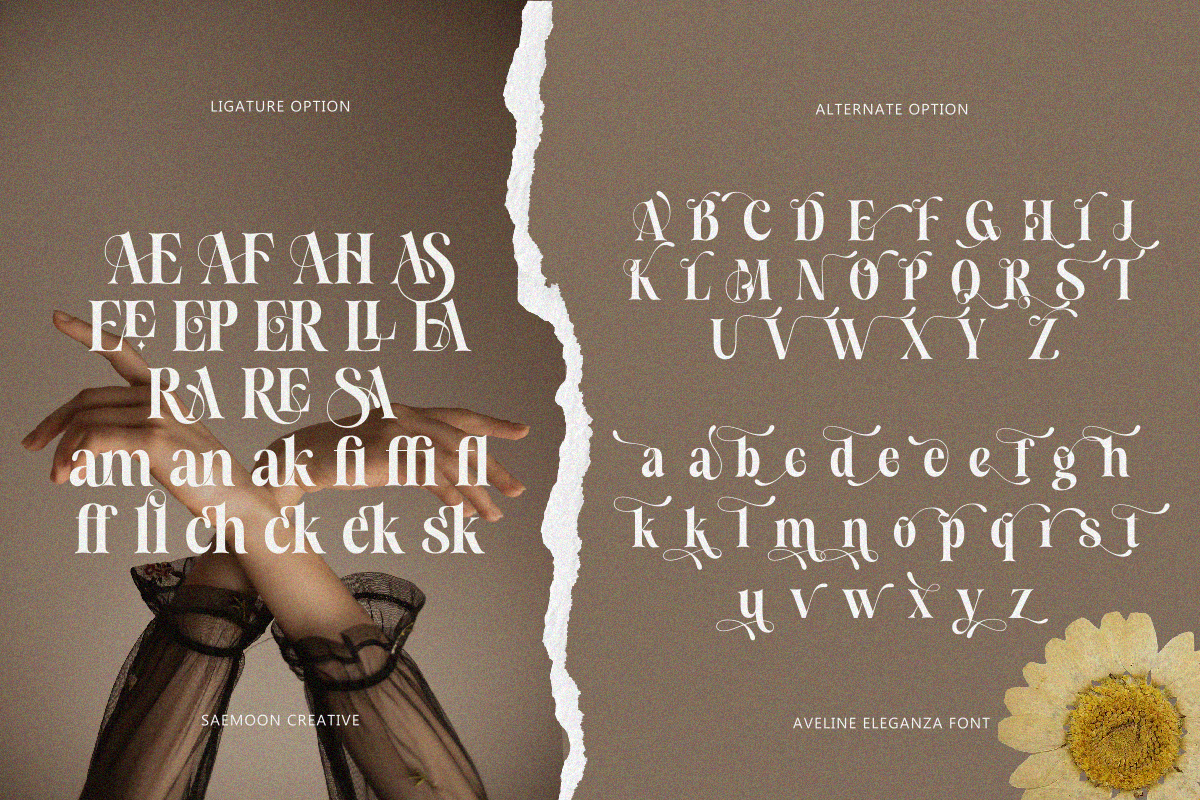 Aveline Eleganza is a cinematic display serif that blends timeless elegance with expressive modern styling. Its flowing curves, dramatic contrast, and refined ornamental details create a luxurious yet artistic presence, making it perfect for captivating headlines, premium branding, fashion projects, posters, packaging, and editorial designs.