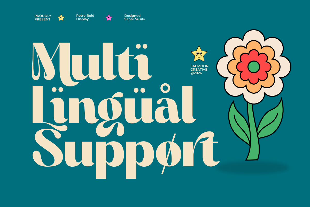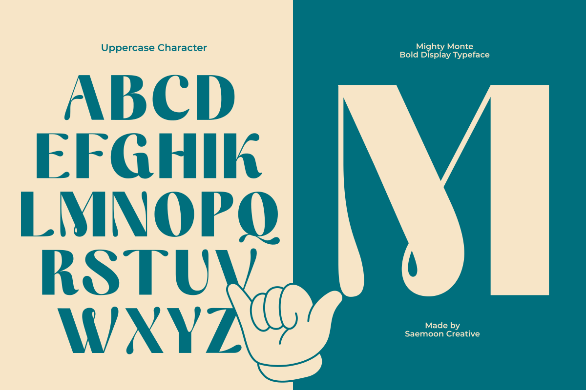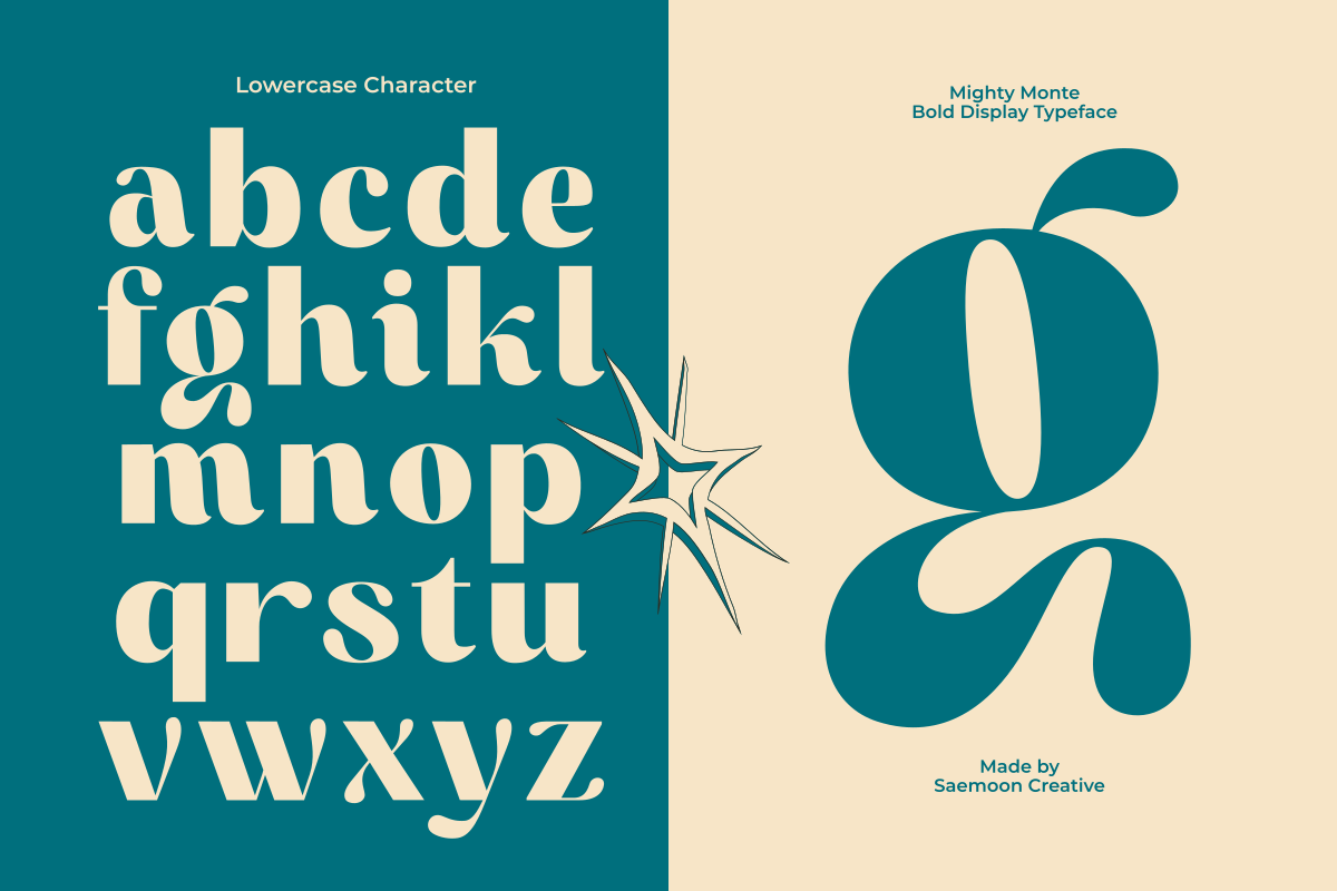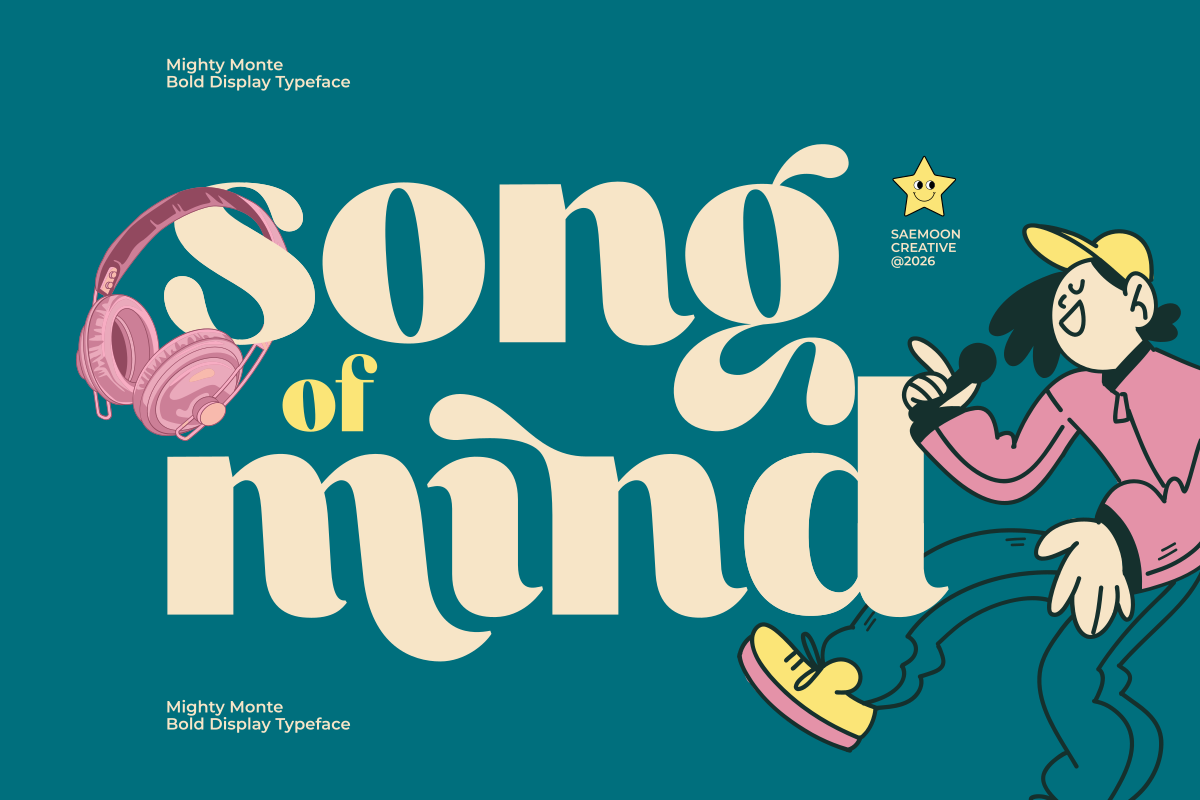 Mighty Monte is a playful retro display font with bold shapes, soft curves, and charming quirky details. Designed to bring fun and personality into your work, this font is perfect for creating eye-catching titles and expressive typography.