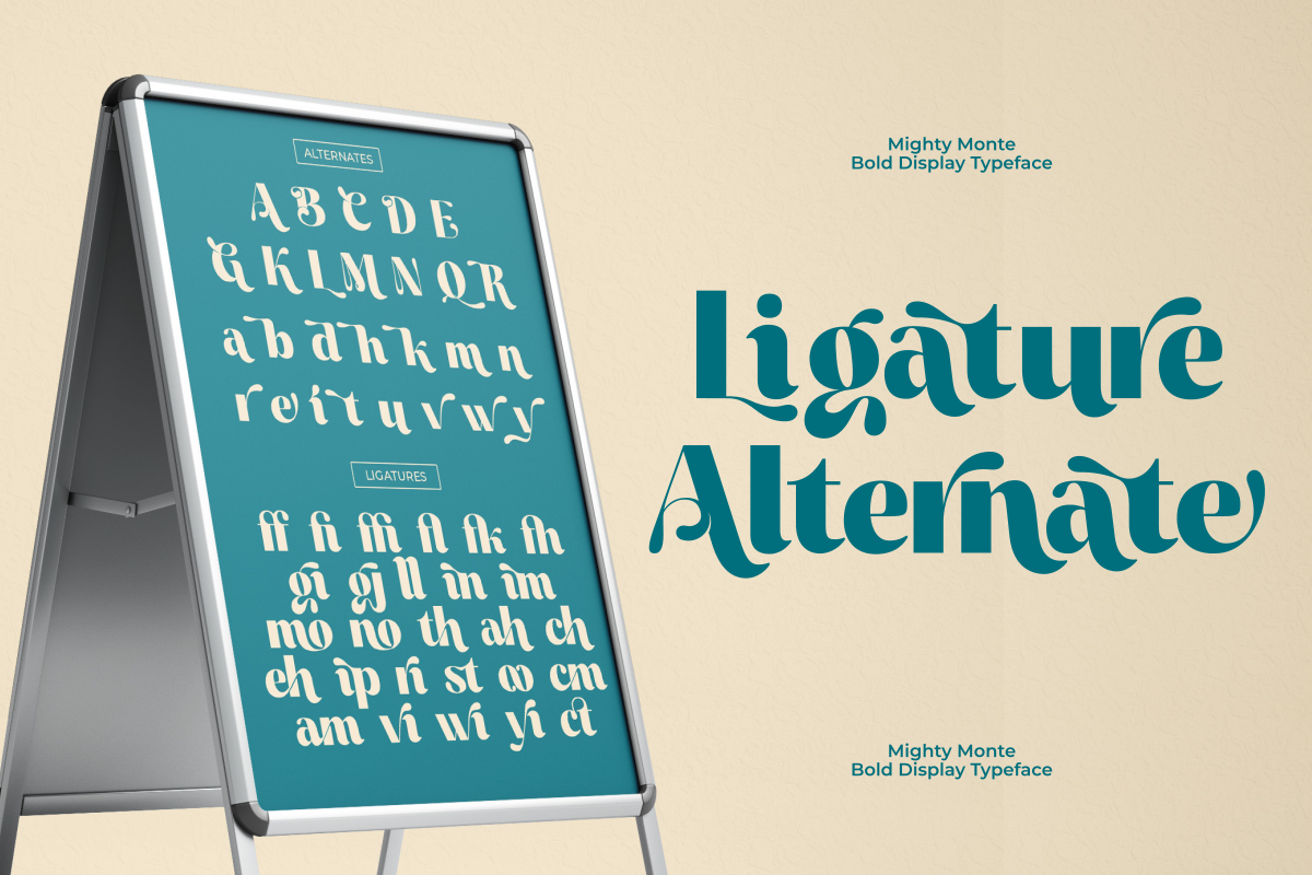 With included ligatures and alternate characters, Mighty Monte gives you more creative flexibility to create unique and customized text styles. Its nostalgic yet fresh look makes it ideal for posters, branding, packaging, logos, social media graphics, and other creative projects.