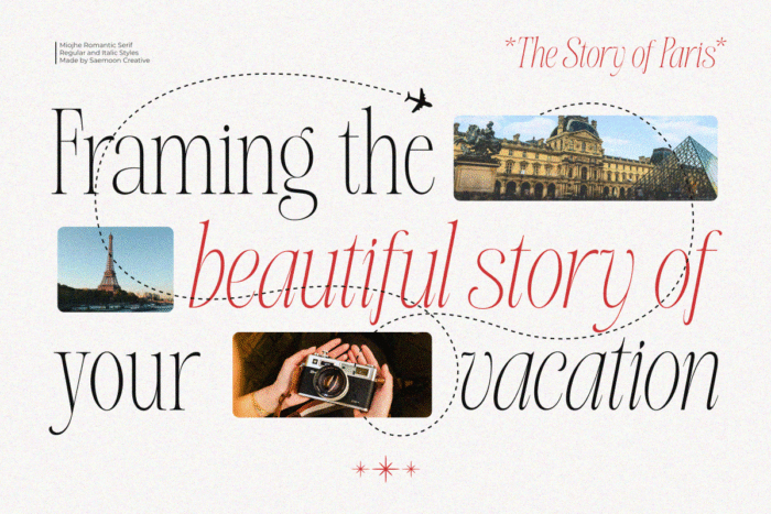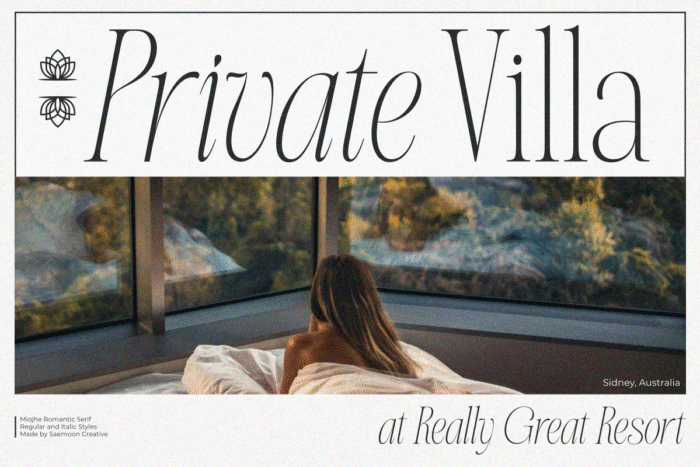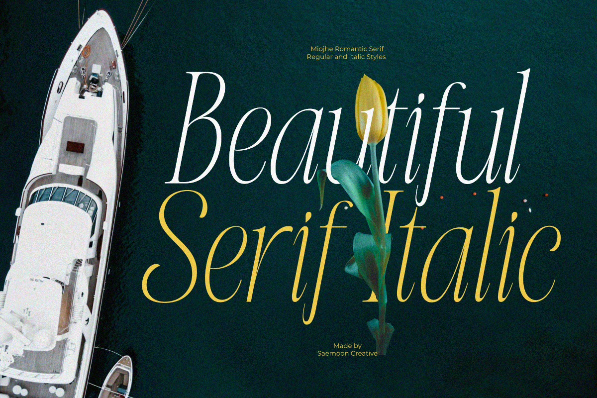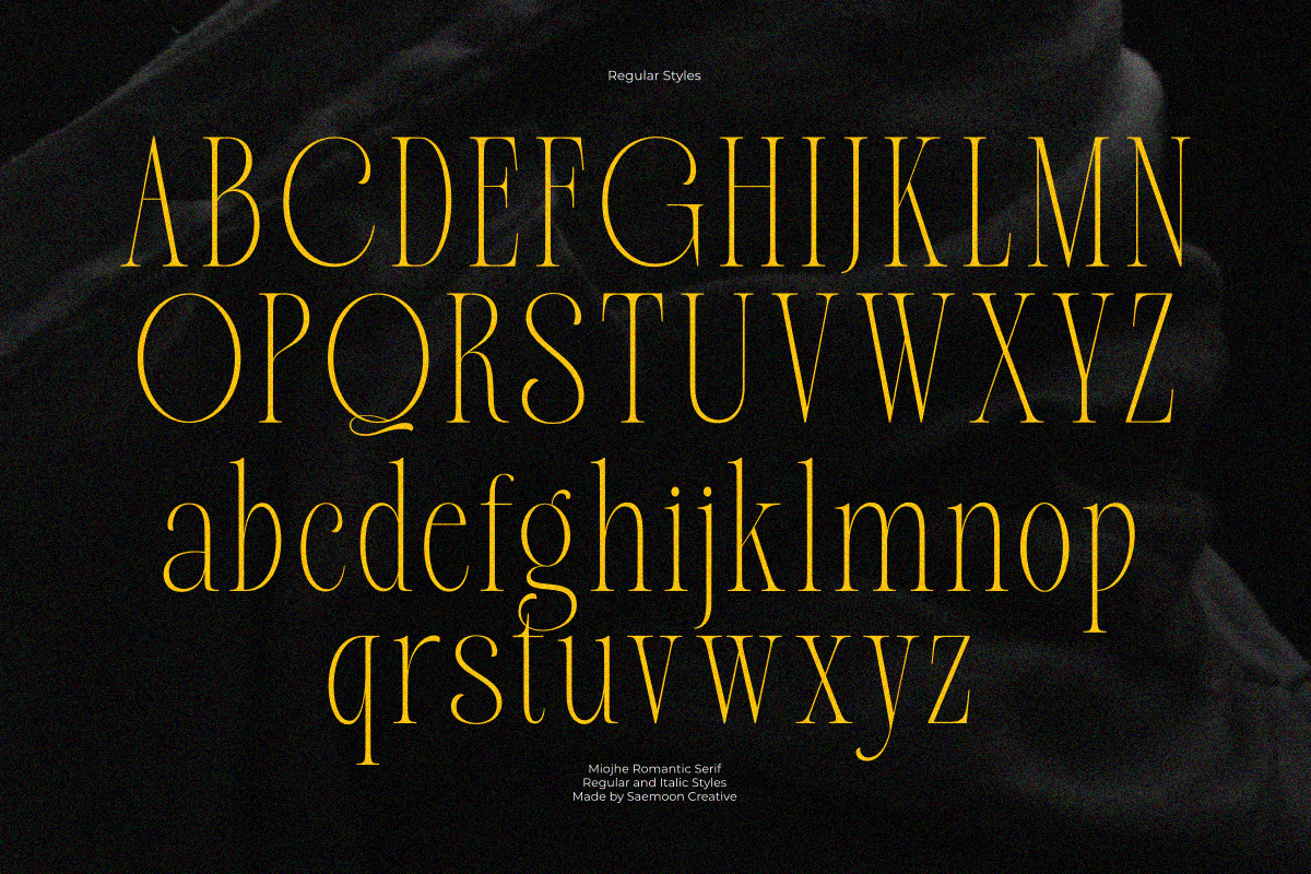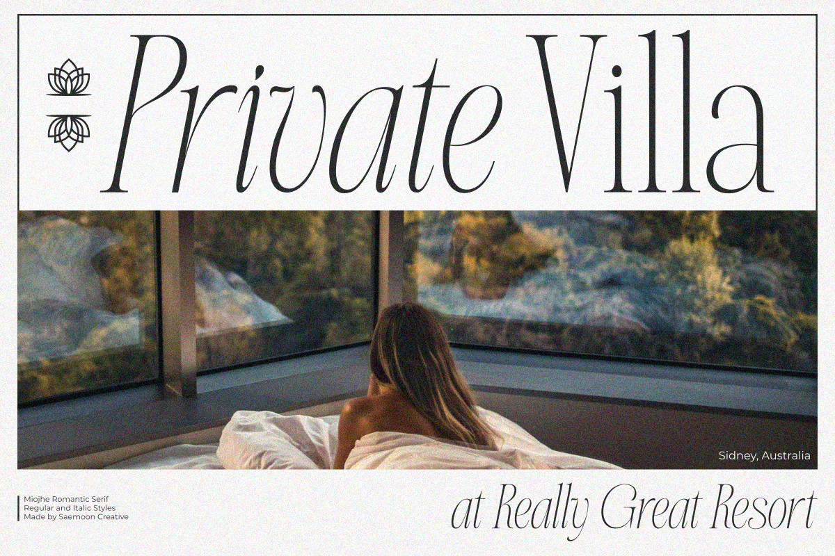 Miojhe – Romantic Serif is an elegant serif typeface that carries a romantic, gentle, and timeless character. Crafted with refined contrasts and graceful curves, Miojhe brings a soft sense of luxury and emotional depth to every design.