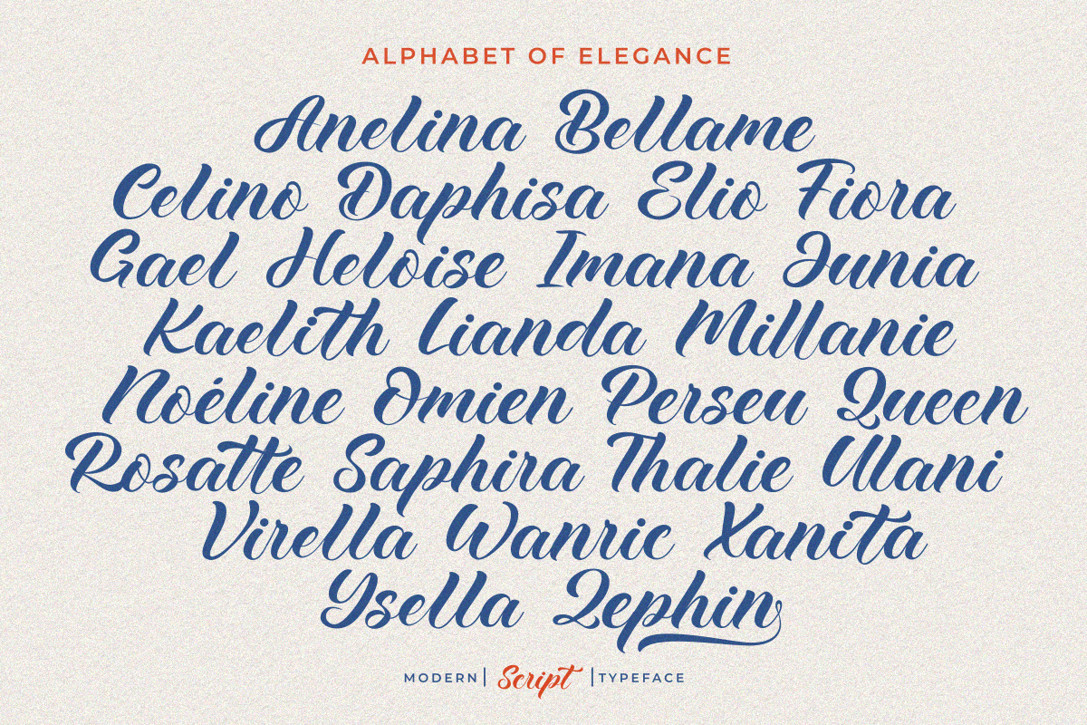 SC Shinta is a modern script typeface designed with smooth curves and elegant letter flow, bringing a luxurious and personal touch to your creative projects. Combining classic charm with contemporary sophistication, SC Shinta features carefully crafted letterforms, seamless connections, and stylish swashes. Perfect for logos, wedding invitations, packaging, posters, branding, and a wide range of design applications, it transforms your work with elegance and character.